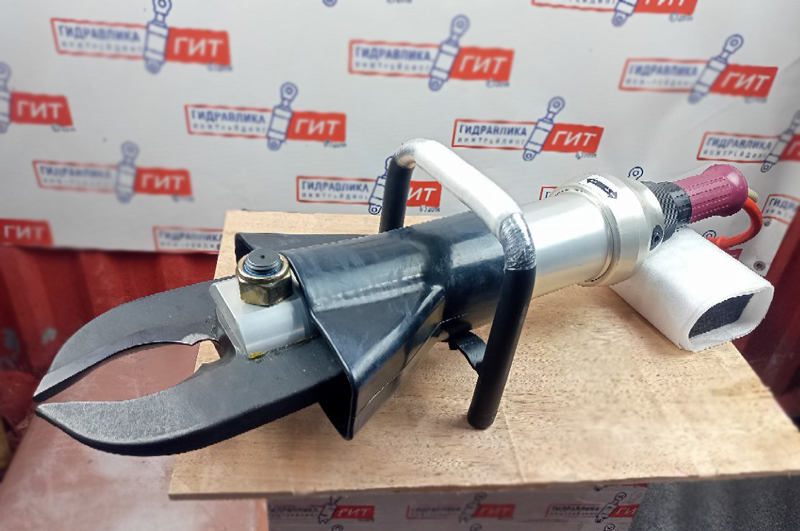 Ножницы гидравлические НГЧ-46-150 (ОКПД 2: 28.12.20.000). Предназначены для перерезания прутка, уголка, швеллера, тавра, двутавра, стоек автомобилей, тонкостенных труб, тросов, толстостенных труб, листового металла, арматуры. Лезвия ножниц серповидной формы для резания металлических профилей, уголков, тонкостенных труб, тросов, кабелей. Встроенный блок управления в гидроустройстве. Ножницы с полуразъемами быстроразъёмных соединений байонетного типа, установленные на гибких гидролиниях. Полуразъемы быстросъемных соединений напорных гибких гидролиний не должны стыковаться с полуразъемами быстросъемных соединений сливных гибких гидролиний. Гибкие гидролинии расположены в торце рукоятки блока управления гидроустройства и защищены гибкими, металлическими элементами, предохраняющими внешнюю поверхность от повреждений. Максимальное раскрытие челюстей - 150 мм. Ножницы НГЧ-46-150 входят в комплект ГАСИ-1С. Аналог: ножницы гидравлические НГ-80, кусачки гидравлические КГ-СЗ и кусачки специальные КС 2080-М.