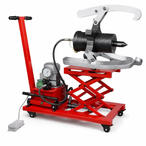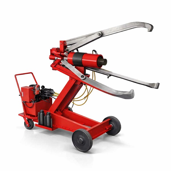 Модель выполнена в подкатном исполнении на тележке с колесными опорами, что упрощает перемещение съемника к месту проведения работ и делает его более удобным для эксплуатации в производственных и ремонтных условиях. Конструкция рассчитана на развиваемое усилие 100 тонн, ход штока 270 мм и рабочее давление 700 бар. Диапазон наружных диаметров снимаемой детали достигает 1500 мм, максимальная глубина захвата — 1220 мм.